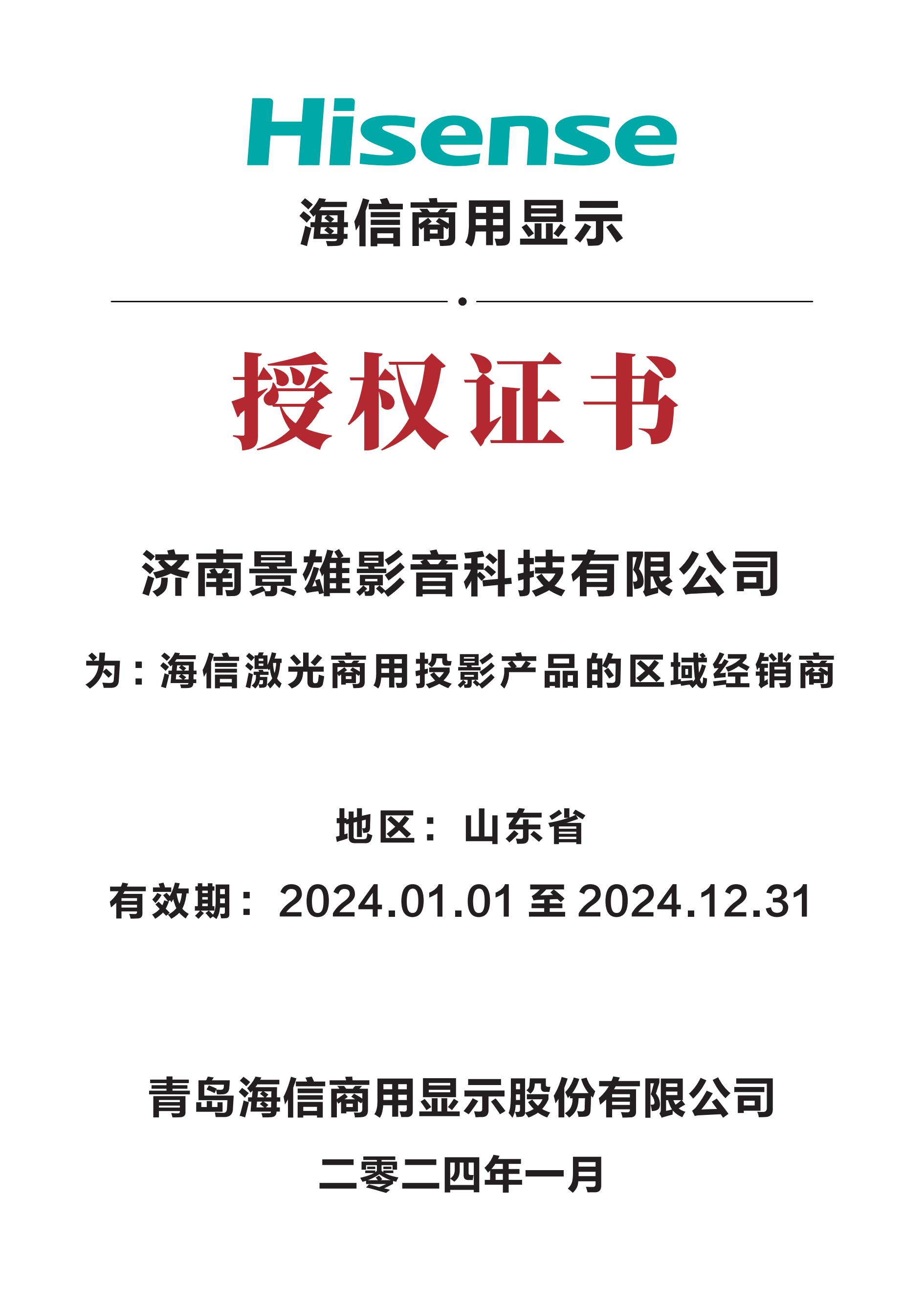 濟南景雄影音科技有限公司是山東省的知名IT企業。 公司成立以來一直致力于多媒體投影系統及其周邊器材的營銷服務。同時承接多媒體教室、專業(3D)家庭影院系統方案、音視頻會議系統、大屏幕投影拼接等工程的方案規劃、產品銷售、安裝調試、保修及維修業務。